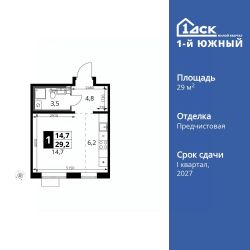Продаётся квартира-студия номер 500 общей площадью 29.2 кв.м. на 17-м этаже 24 этажного здания. Отделка Whitebox.