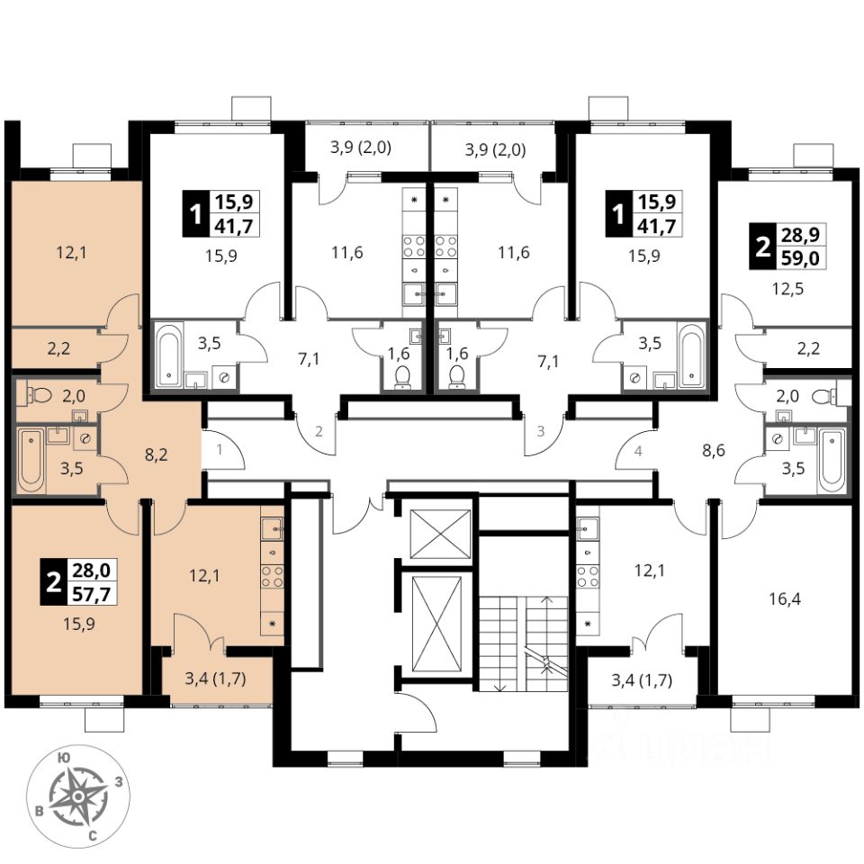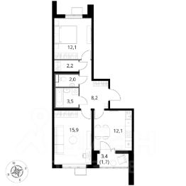 Продаётся 2-к квартира номер 125 общей площадью 57.7 кв.м. на 9-м этаже 25 этажного здания. Отделка Whitebox. Цена с учётом скидки.