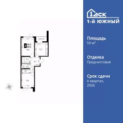 Продаётся 2-к квартира номер 786 общей площадью 59.5 кв.м. на 21-м этаже 24 этажного здания. Отделка Whitebox. Цена с учётом скидки.