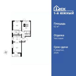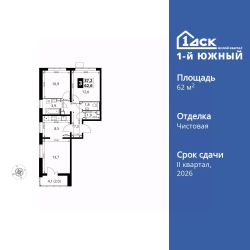 Продаётся 3-к квартира номер 846 общей площадью 62.6 кв.м. на 8-м этаже 24 этажного здания. Чистовая отделка. Цена с учётом скидки.