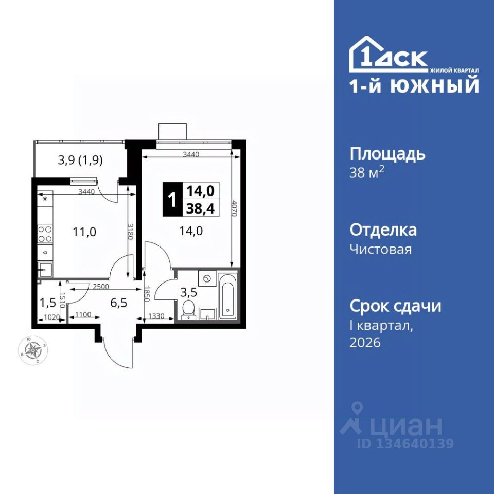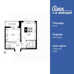 Продаётся 1-к квартира номер 71 общей площадью 38.4 кв.м. на 19-м этаже 25 этажного здания. Чистовая отделка. Цена с учётом скидки.