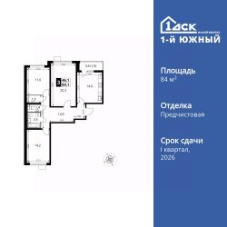 Продаётся 3-к квартира номер 269 общей площадью 84.1 кв.м. на 14-м этаже 25 этажного здания. Отделка Whitebox. Цена с учётом скидки.