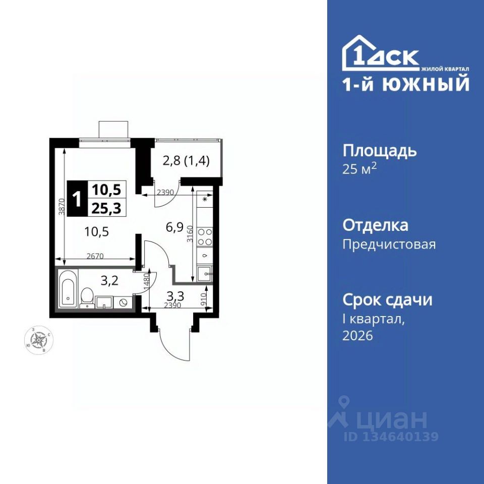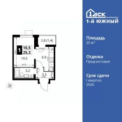 Продаётся квартира-студия номер 407 общей площадью 25.3 кв.м. на 12-м этаже 24 этажного здания. Отделка Whitebox. Цена с учётом скидки.