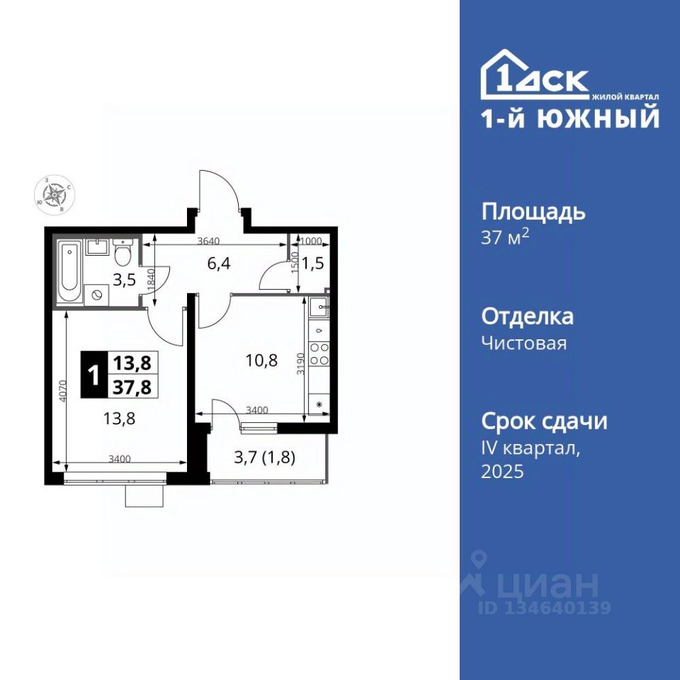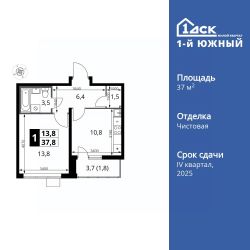 Продаётся 1-к квартира номер 566 общей площадью 37.8 кв.м. на 10-м этаже 24 этажного здания. Чистовая отделка. Цена с учётом скидки.