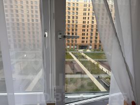 — Из спальни — вид в тихий закрытый двор с детскими площадками и зонами отдыха.