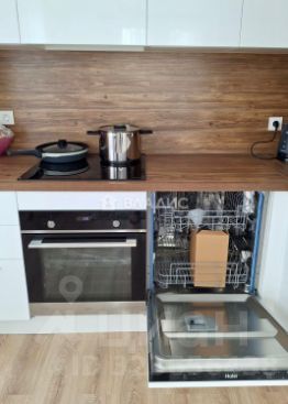 В квартире уже установлена кухня со встроенной техникой, холодильник, посудомоечная машина, духовой шкаф.
