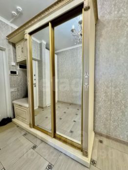 В прихожей — вместительный зеркальный шкаф-купе и встроенные системы хранения.