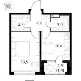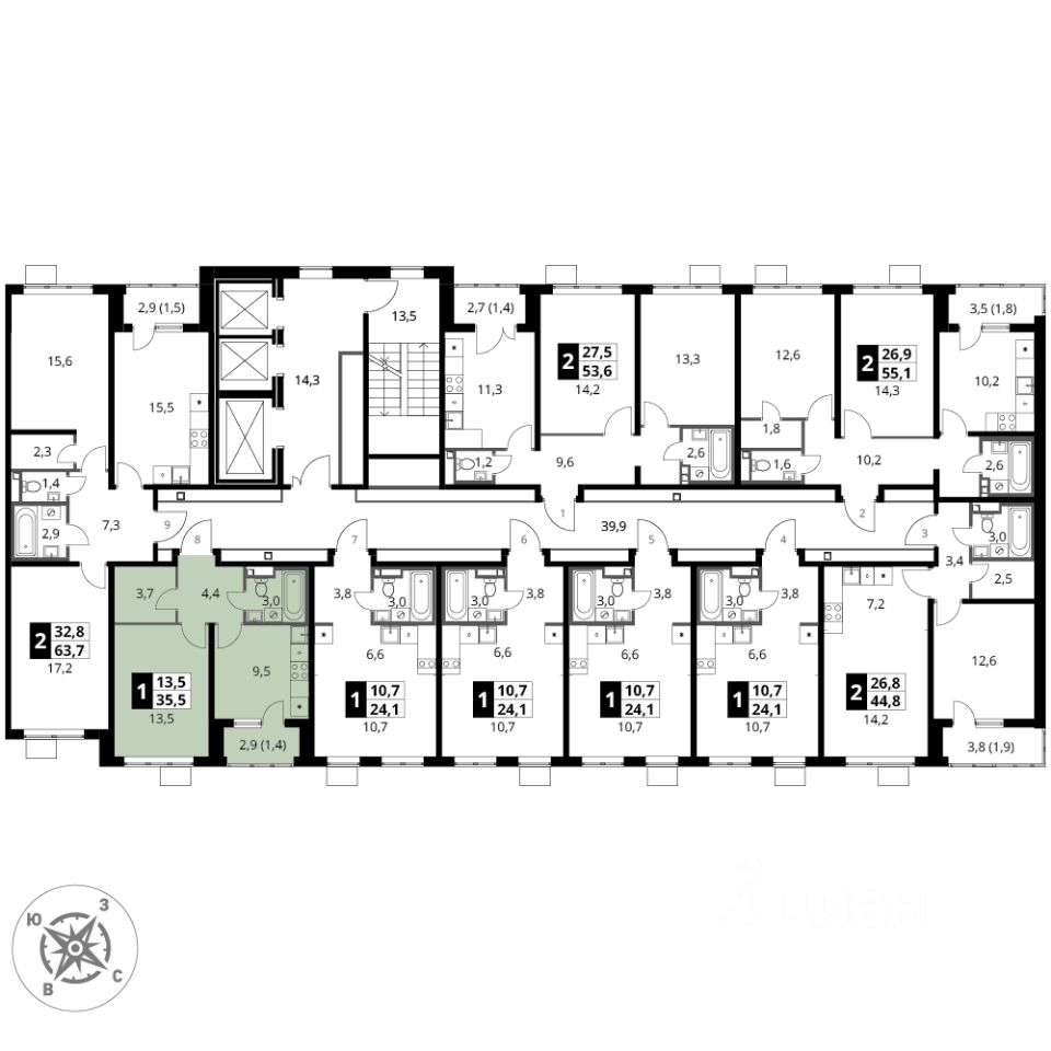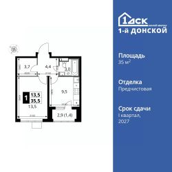 Продаётся 1-к квартира номер 536 общей площадью 35.5 кв.м. на 7-м этаже 24 этажного здания. Отделка Whitebox.