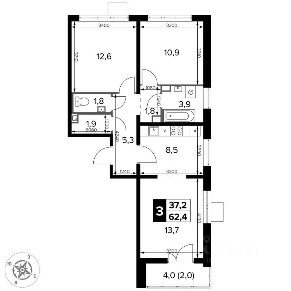 - Евроформат - просторное и удобное жилье с отличной планировкой.