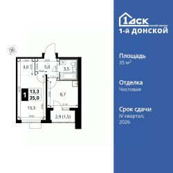 Продаётся 1-к квартира номер 364 общей площадью 35 кв.м. на 13-м этаже 24 этажного здания. Чистовая отделка.