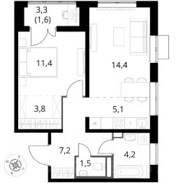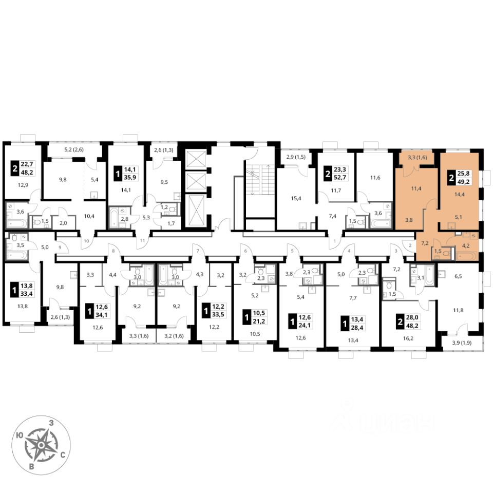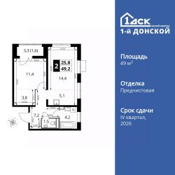 Продаётся 2-к квартира номер 551 общей площадью 49.2 кв.м. на 8-м этаже 24 этажного здания. Отделка Whitebox.
