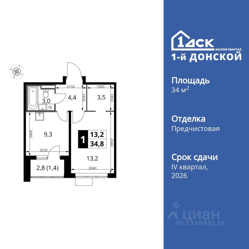 Продаётся 1-к квартира номер 938 общей площадью 34.8 кв.м. на 24-м этаже 24 этажного здания. Отделка Whitebox.