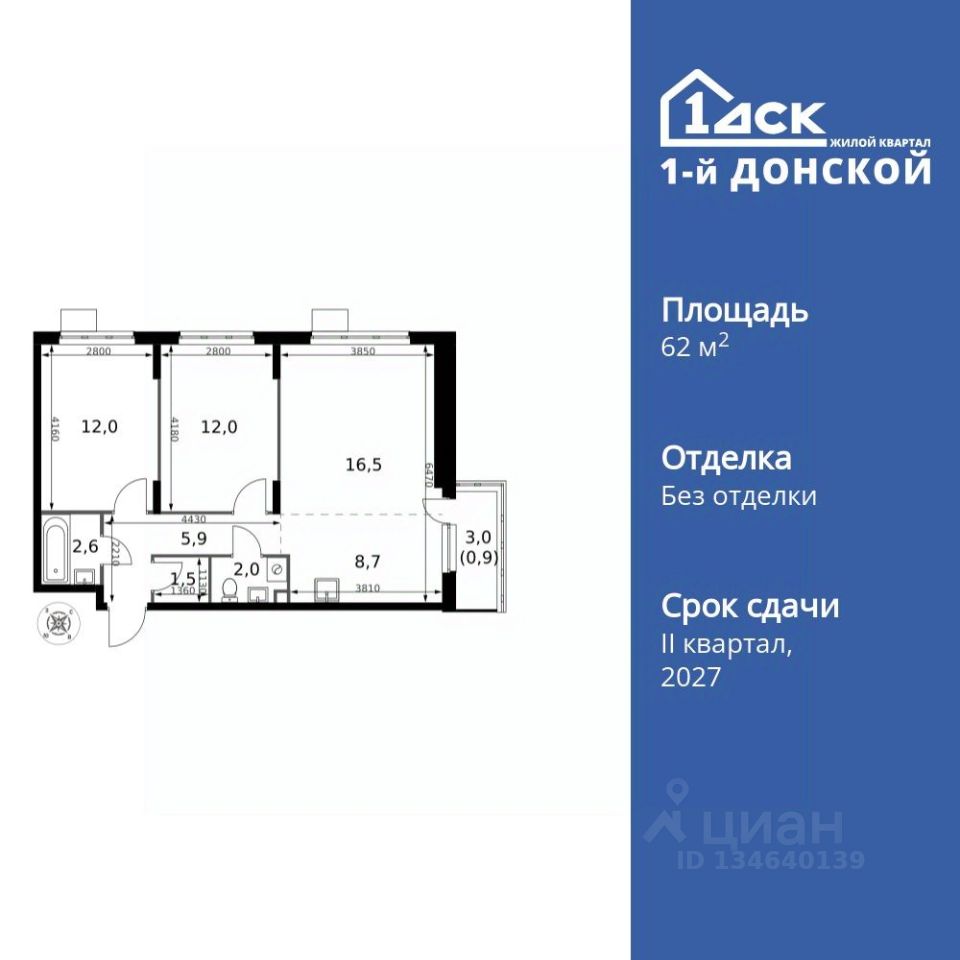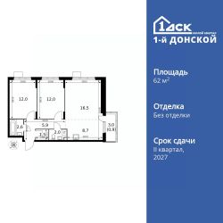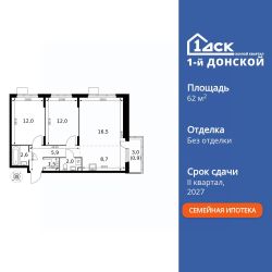 Продаётся 3-к квартира номер 129 общей площадью 62.1 кв.м. на 13-м этаже 24 этажного здания. Без отделки.