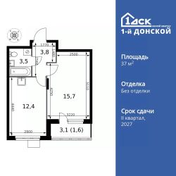 Продаётся 1-к квартира номер 99 общей площадью 37 кв.м. на 10-м этаже 24 этажного здания. Без отделки.