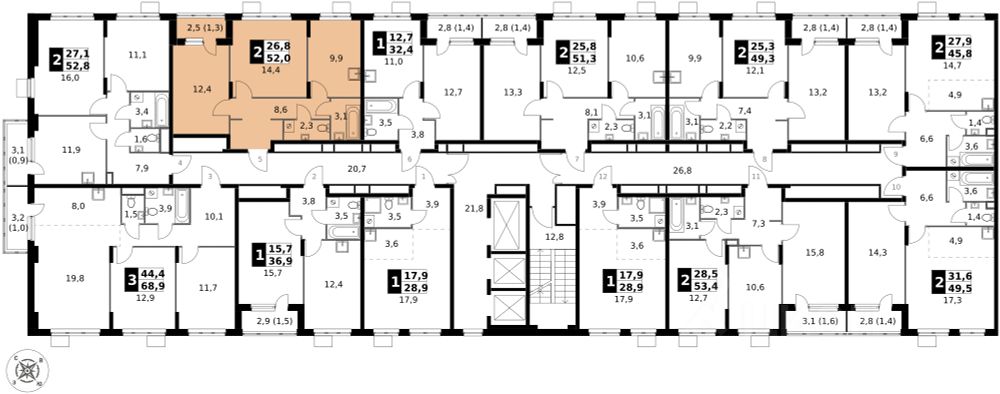 Продаётся 2-к квартира номер 378 общей площадью 52 кв.м. на 12-м этаже 24 этажного здания. Чистовая отделка.