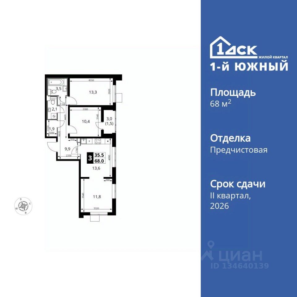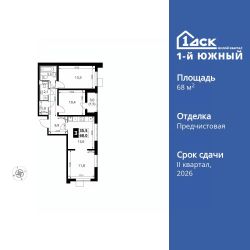 Продаётся 3-к квартира номер 273 общей площадью 68 кв.м. на 12-м этаже 25 этажного здания. Отделка Whitebox. Цена с учётом скидки.