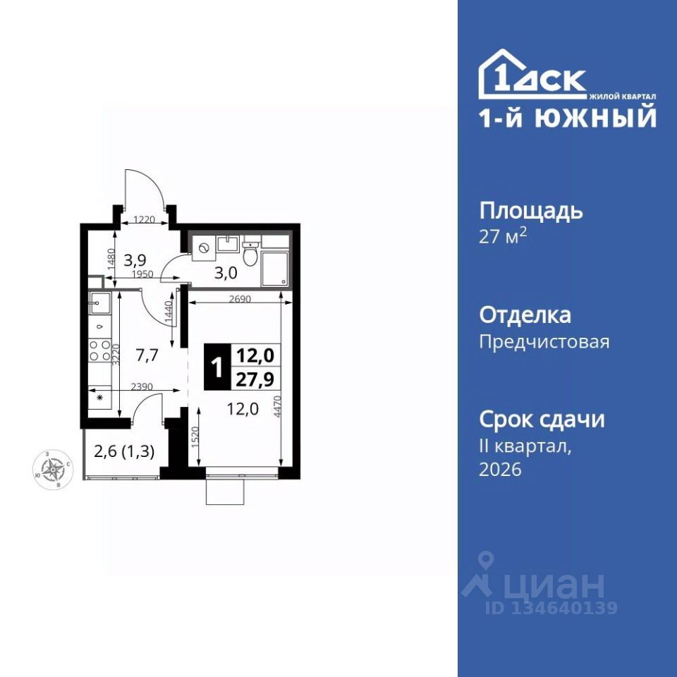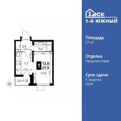 Продаётся квартира-студия номер 322 общей площадью 27.9 кв.м. на 18-м этаже 25 этажного здания. Отделка Whitebox.