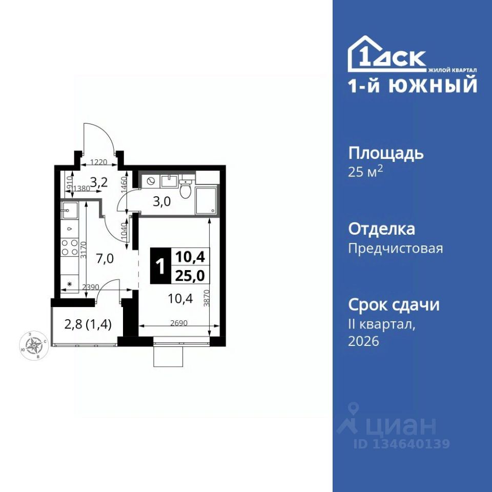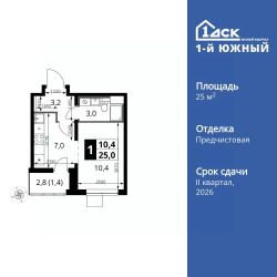 Продаётся квартира-студия номер 458 общей площадью 25 кв.м. на 12-м этаже 24 этажного здания. Отделка Whitebox.