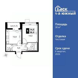 Продаётся 1-к квартира номер 897 общей площадью 38 кв.м. на 16-м этаже 24 этажного здания. Чистовая отделка.
