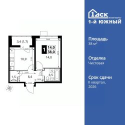 Продаётся 1-к квартира номер 939 общей площадью 38 кв.м. на 22-м этаже 24 этажного здания. Чистовая отделка.