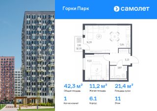 Строим кварталы для жизни с заботой о будущем. Предлагается 1-комнатная квартира комфорт-класса 42,32 кв.м в корпусе 6.1 на 11 этаже, в ЖК "Горки Парк"