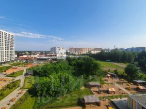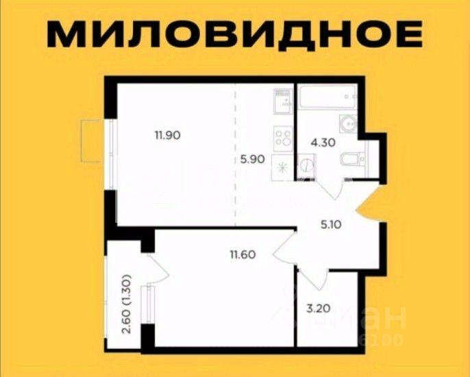 Общая площадь квартиры составляет 43,3 кв. м, жилая — 12,5 кв. м, площадь кухни — 18 кв. м. Высота потолков — 2,8 м. Есть лоджия, где можно обустроить уютное место для отдыха.