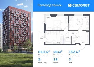 Строим кварталы для жизни с заботой о будущем. Предлагается 2-комнатная квартира комфорт-класса 54,44 кв.м в корпусе 18 на 3 этаже, в ЖК "Пригород Лесное"