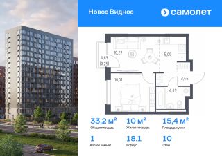 Строим кварталы для жизни с заботой о будущем. Предлагается 1-комнатная квартира комфорт-класса 33,17 кв.м в корпусе 18.1 на 10 этаже, в ЖК "Новое Видное"