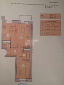 Площадь квартиры 43.3 кв. м, расположена на 5 этаже восьмиэтажного здания. Высота потолков — 2.7 метра, что создает ощущение простора. Кухня-гостиная совмещенная(5.4+18,6 кв.м) , с двумя окнами во двор. Спальня изолированная 9.6 кв. м