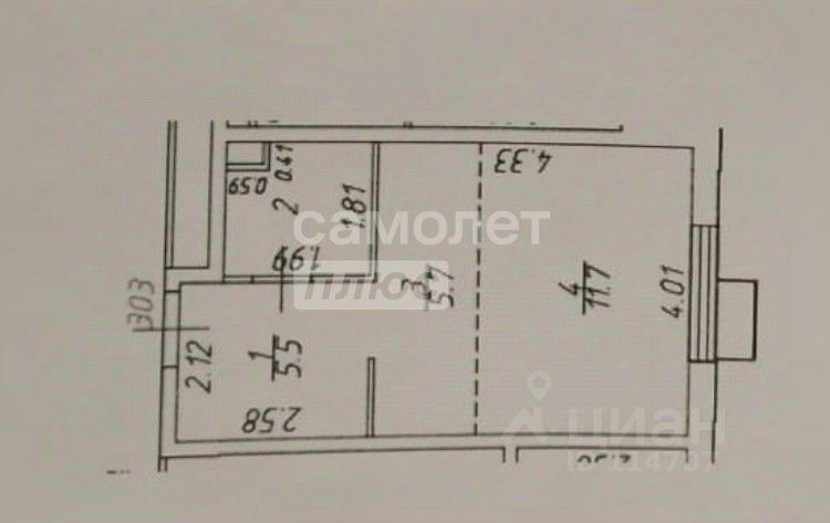 Квартира-студия просторная и светлая с предчистовым ремонтом.