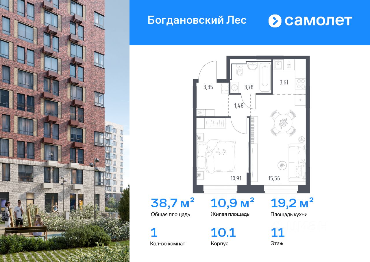 Строим кварталы для жизни с заботой о будущем. Предлагается 1-комнатная квартира комфорт-класса 38,69 кв.м в корпусе 10.1 на 11 этаже, в ЖК "Богдановский Лес"