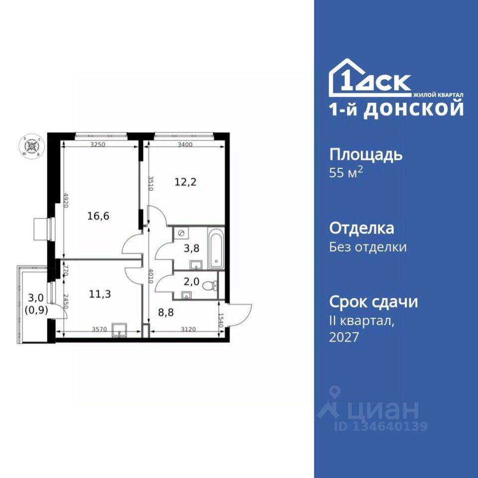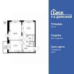 Продаётся 2-к квартира номер 179 общей площадью 55.6 кв.м. на 18-м этаже 24 этажного здания. Без отделки.