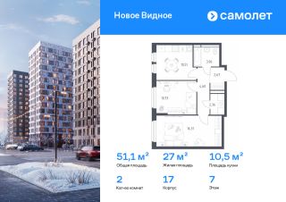 Строим кварталы для жизни с заботой о будущем. Предлагается 2-комнатная квартира комфорт-класса 51,14 кв.м в корпусе 17 на 7 этаже, в ЖК "Новое Видное"