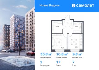 Строим кварталы для жизни с заботой о будущем. Предлагается 1-комнатная квартира комфорт-класса 35,78 кв.м в корпусе 17 на 7 этаже, в ЖК "Новое Видное"