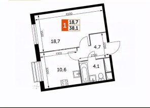 Дом сдан! Квартира 38.1 кв.м. на 10 этаже, без отделки — воплотите свои дизайнерские идеи!