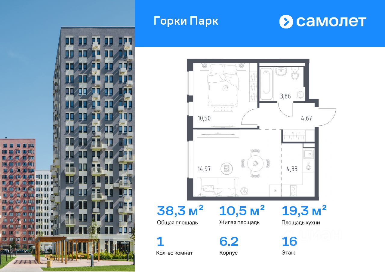 Строим кварталы для жизни с заботой о будущем. Предлагается 1-комнатная квартира комфорт-класса 38,33 кв.м в корпусе 6.2 на 16 этаже, в ЖК "Горки Парк"