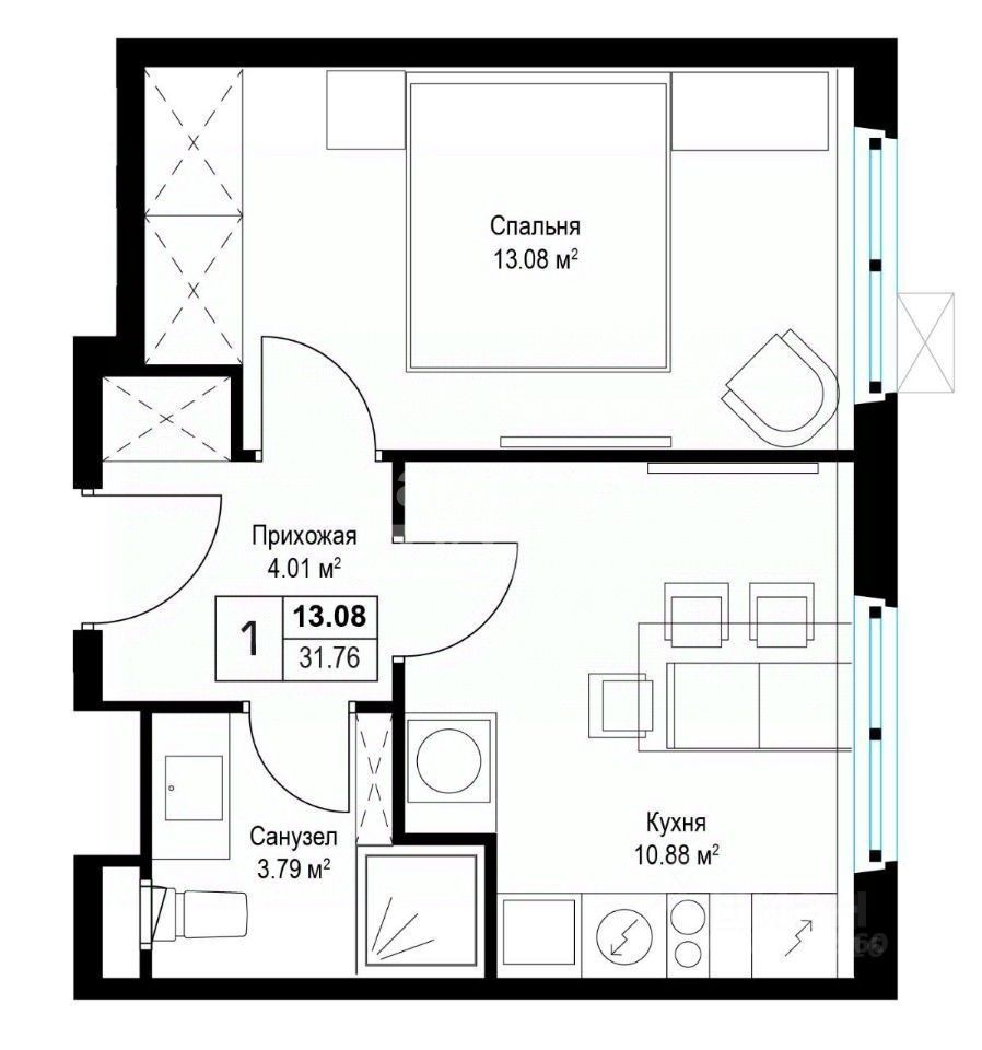 В квартире, общей площадью 31.2 кв. м, вас ждет просторная кухня 10.9 кв. м и комната 12.1 кв. м, где высокие потолки (2.8 метра) создают ощущение свободы и простора. Расположенная на 16 этаже 17-этажного монолитного дома 2024 года постройки.