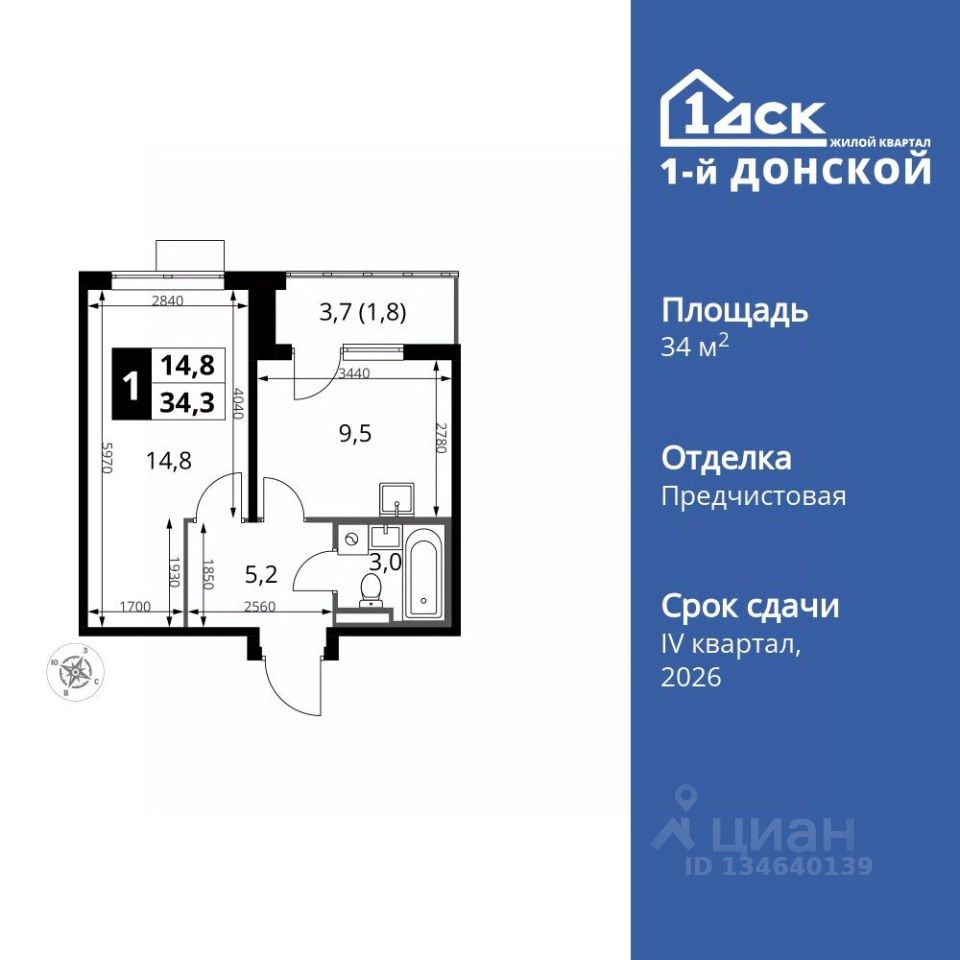 Продаётся 1-к квартира номер 162 общей площадью 34.3 кв.м. на 16-м этаже 24 этажного здания. Отделка Whitebox.