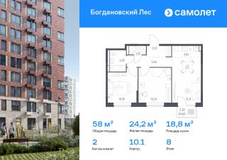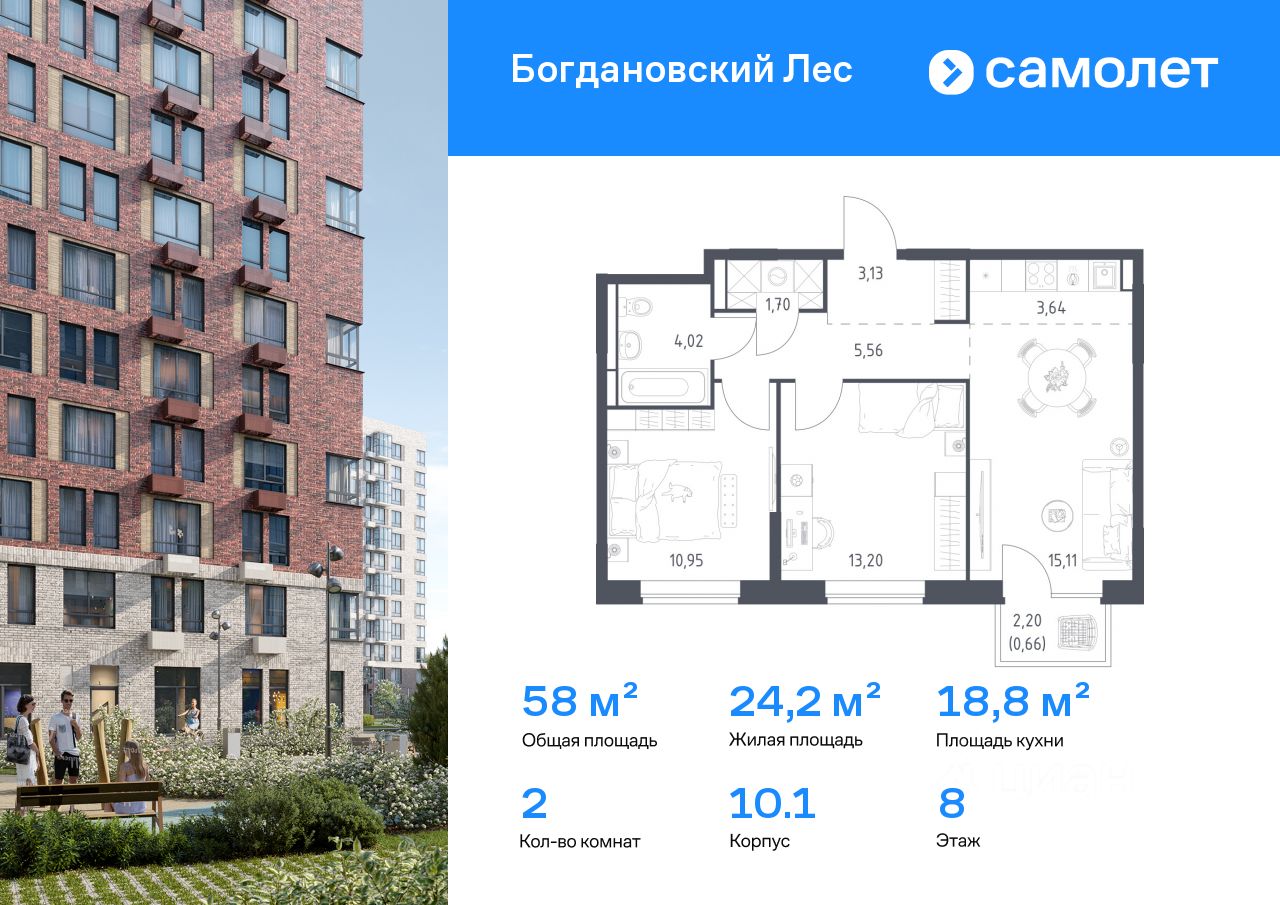 Строим кварталы для жизни с заботой о будущем. Предлагается 2-комнатная квартира комфорт-класса 57,97 кв.м в корпусе 10.1 на 8 этаже, в ЖК "Богдановский Лес"