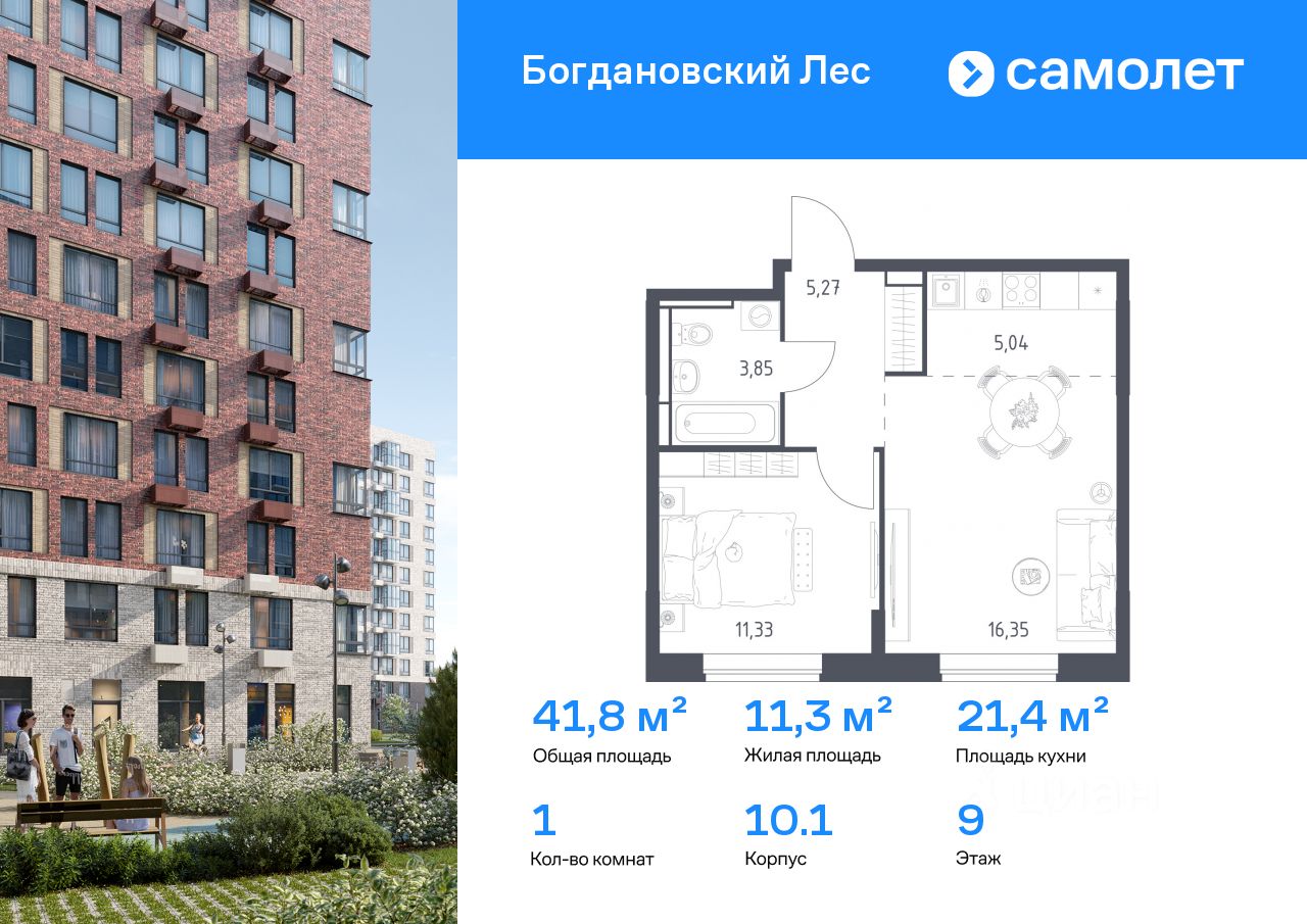 Строим кварталы для жизни с заботой о будущем. Предлагается 1-комнатная квартира комфорт-класса 41,84 кв.м в корпусе 10.1 на 9 этаже, в ЖК "Богдановский Лес"