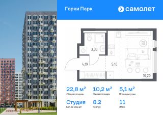 Строим кварталы для жизни с заботой о будущем. Предлагается квартира студия комфорт-класса 22,82 кв.м в корпусе 8.2 на 11 этаже, в ЖК "Горки Парк"
