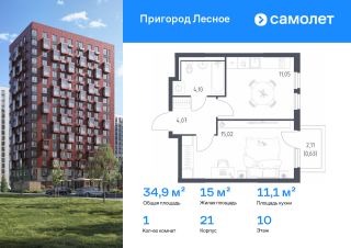 Строим кварталы для жизни с заботой о будущем. Предлагается 1-комнатная квартира комфорт-класса 34,87 кв.м в корпусе 21 на 10 этаже, в ЖК "Пригород Лесное"