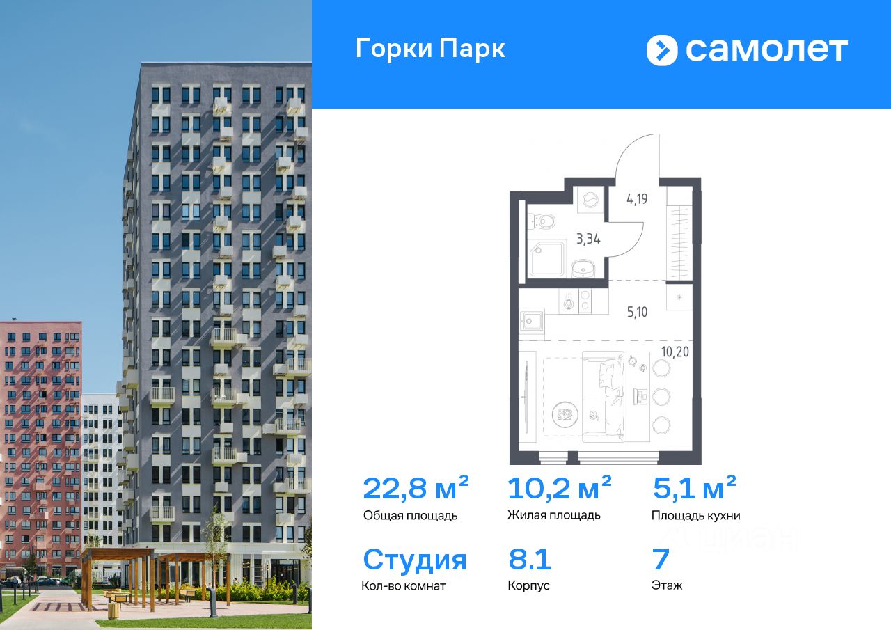 Строим кварталы для жизни с заботой о будущем. Предлагается квартира студия комфорт-класса 22,83 кв.м в корпусе 8.1 на 7 этаже, в ЖК "Горки Парк"