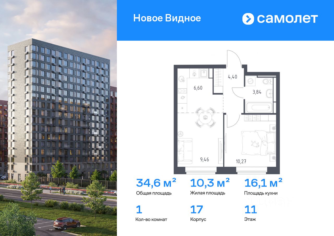 Строим кварталы для жизни с заботой о будущем. Предлагается 1-комнатная квартира комфорт-класса 34,57 кв.м в корпусе 17 на 11 этаже, в ЖК "Новое Видное"