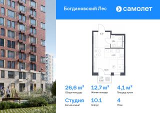 Строим кварталы для жизни с заботой о будущем. Предлагается квартира студия комфорт-класса 26,59 кв.м в корпусе 10.1 на 4 этаже, в ЖК "Богдановский Лес"
