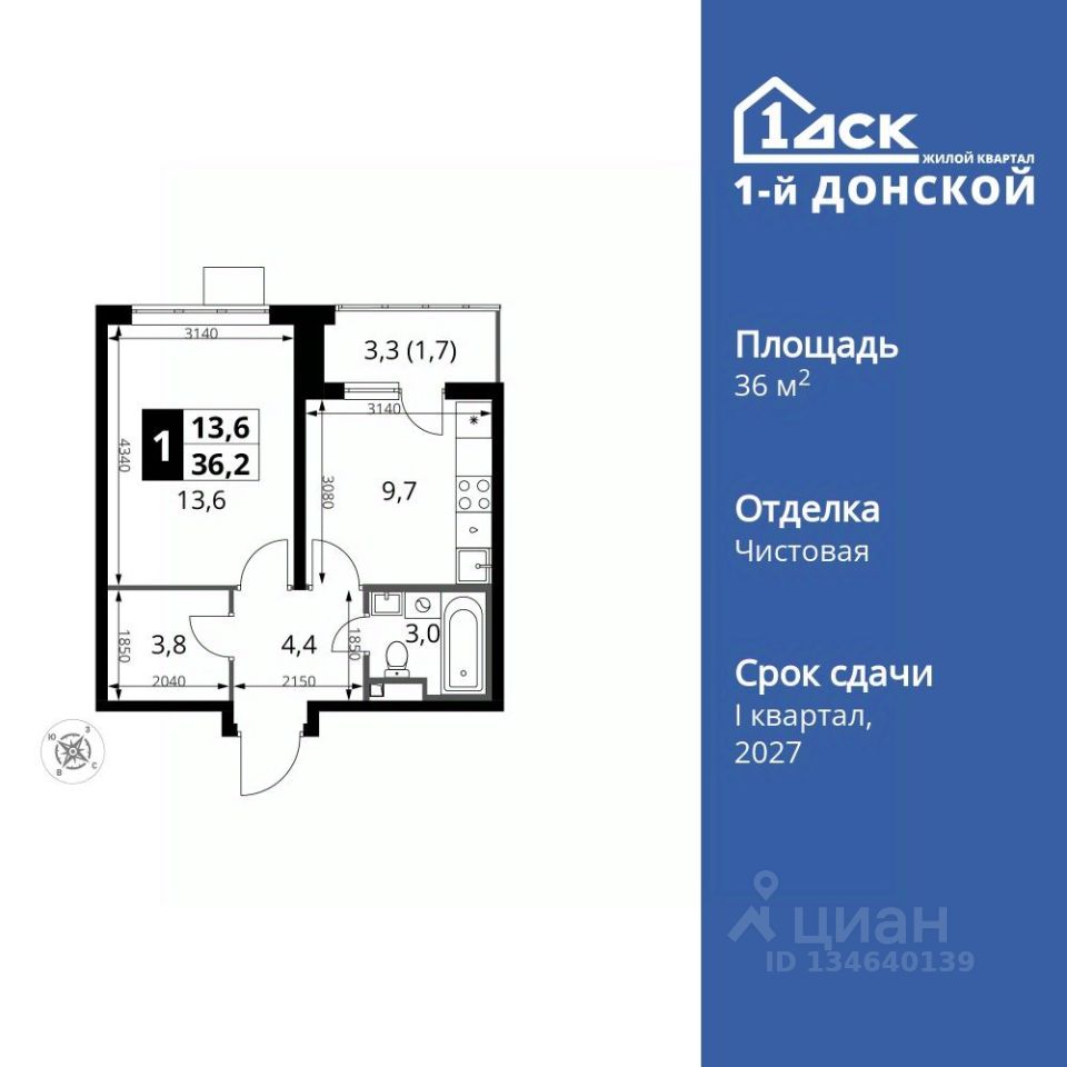 Продаётся 1-к квартира номер 224 общей площадью 36.2 кв.м. на 24-м этаже 24 этажного здания. Чистовая отделка.