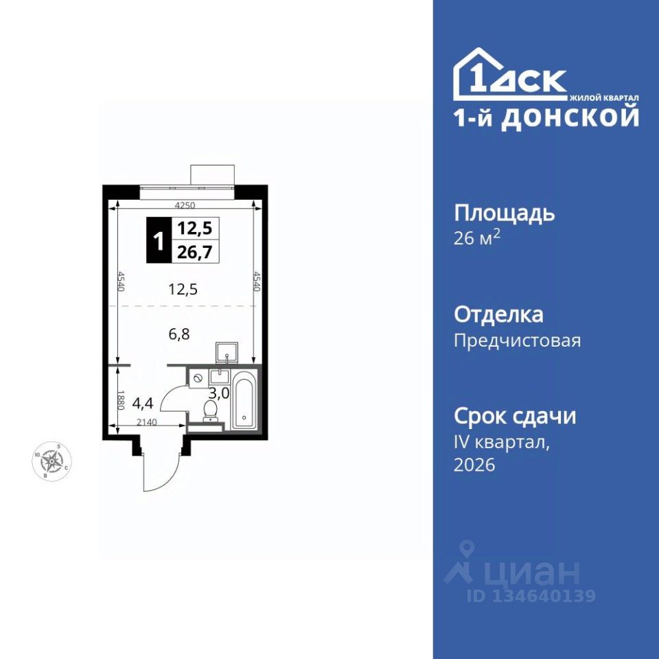 Продаётся квартира-студия номер 236 общей площадью 26.7 кв.м. на 23-м этаже 24 этажного здания. Отделка Whitebox.