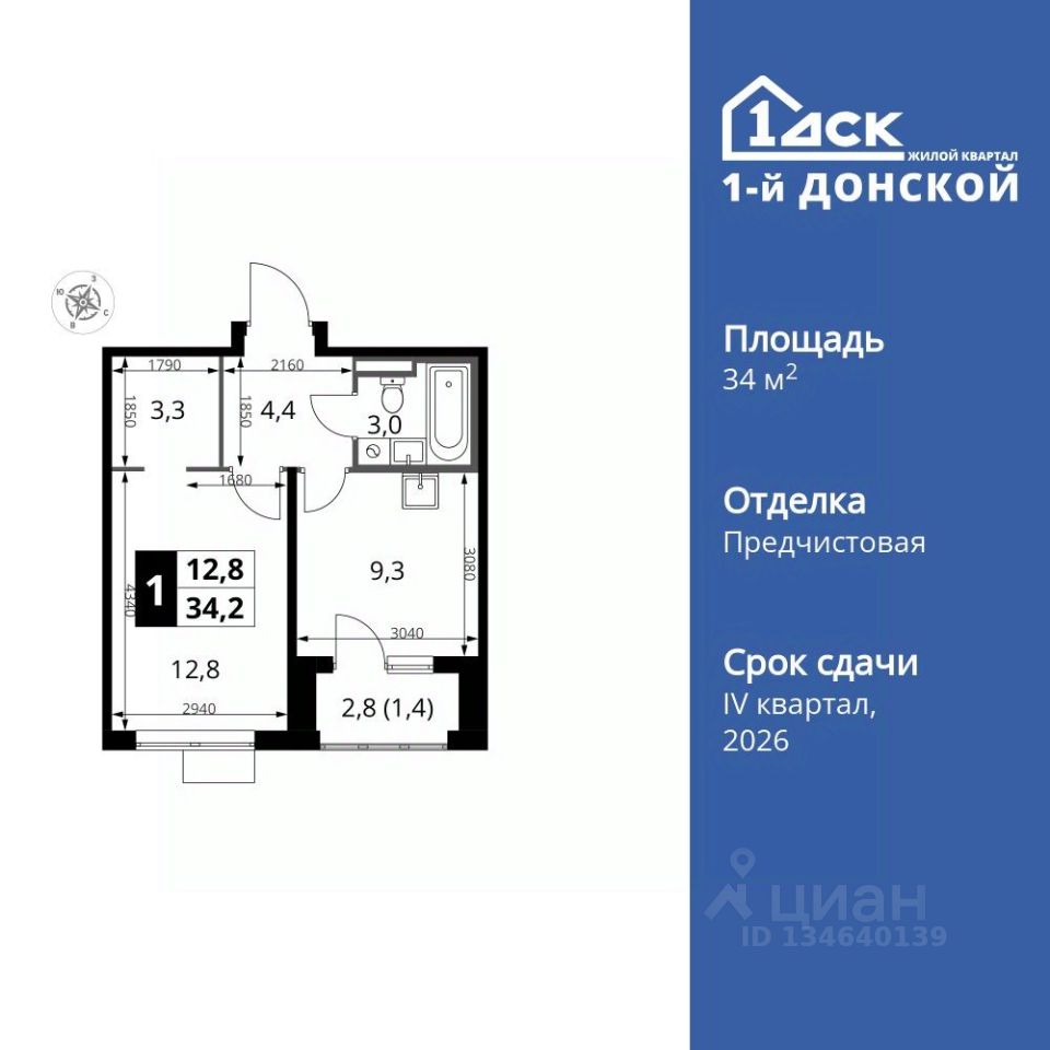Продаётся 1-к квартира номер 847 общей площадью 34.2 кв.м. на 14-м этаже 24 этажного здания. Отделка Whitebox.