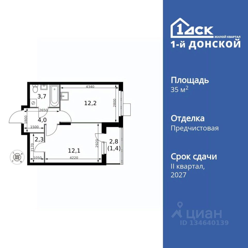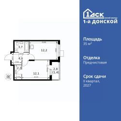 Продаётся 1-к квартира номер 657 общей площадью 35.7 кв.м. на 13-м этаже 24 этажного здания. Отделка Whitebox.