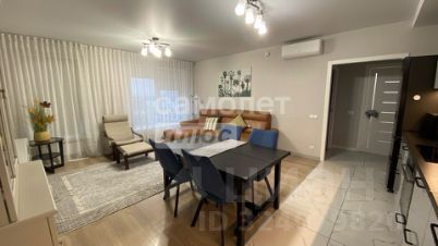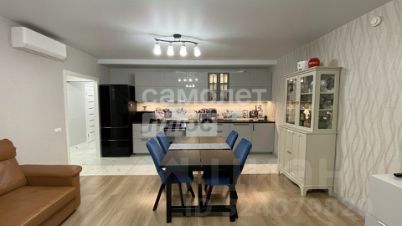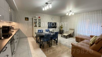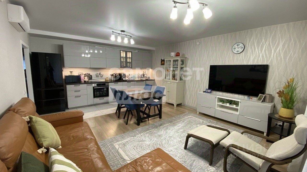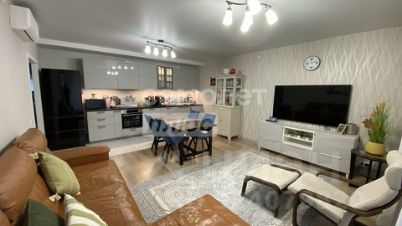 Просторная и функциональная кухня-гостиная 28.7 м² с новой качественной встроенной техникой и большим холодильником (посудомоечная машина 60см, варочная панель, духовой шкаф, свч, вытяжка, кофеварка) идеальное место для семейного отдыха и кулинарных экспериментов.